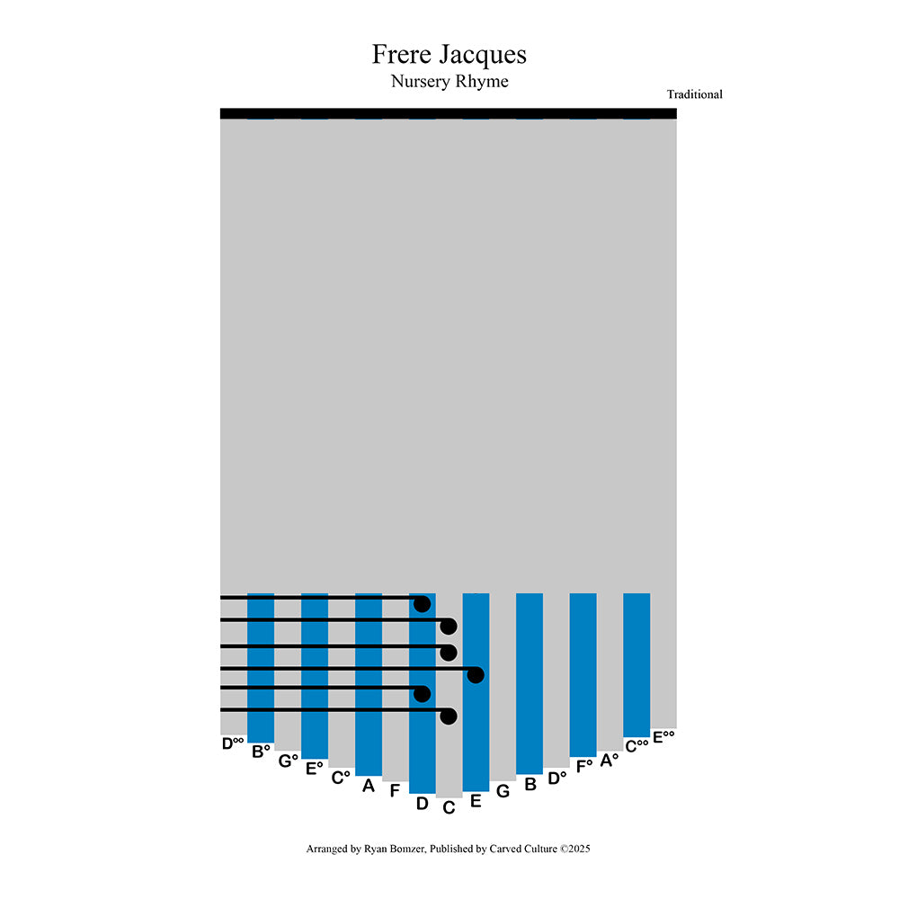 © Carved Culture. All rights reserved. This digital sheet music of Frère Jacques is based on a public domain melody. By purchasing this sheet music, you are granted a license for personal, educational, or non-commercial use only. Redistribution or commercial use of the sheet music is prohibited. All artwork and presentation of the sheet music are the property of Carved Culture.