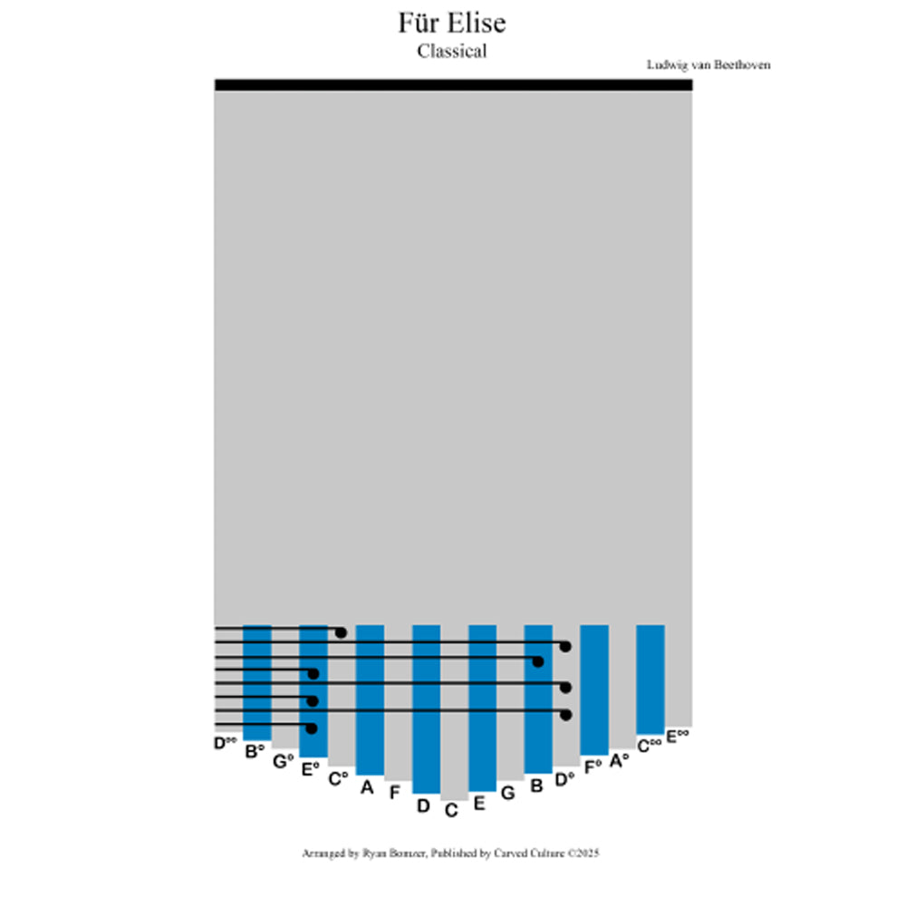 © Carved Culture. All rights reserved. This digital sheet music of Fur elise is based on a public domain melody. By purchasing this sheet music, you are granted a license for personal, educational, or non-commercial use only. Redistribution or commercial use of the sheet music is prohibited. All artwork and presentation of the sheet music are the property of Carved Culture.