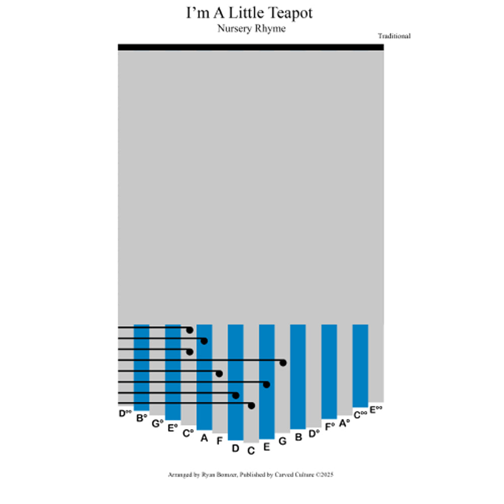 © Carved Culture. All rights reserved. This digital sheet music of Im a Little Teapot is based on a public domain melody. By purchasing this sheet music, you are granted a license for personal, educational, or non-commercial use only. Redistribution or commercial use of the sheet music is prohibited. All artwork and presentation of the sheet music are the property of Carved Culture.